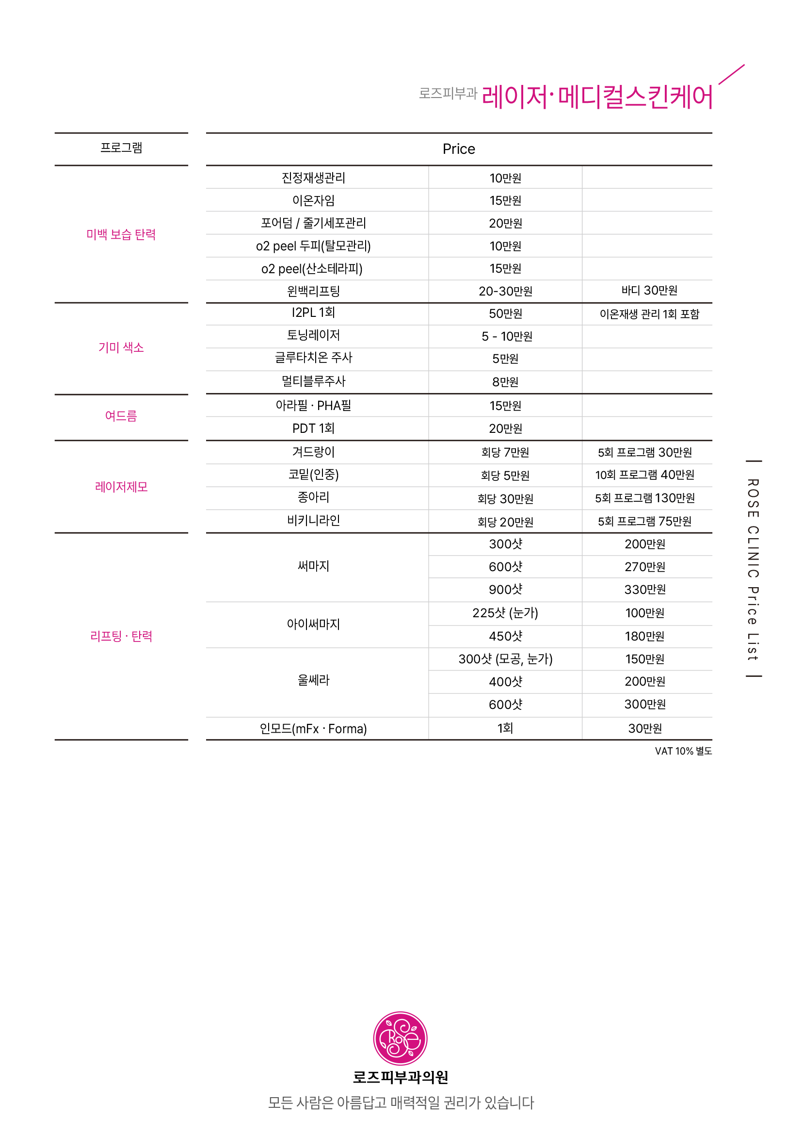 분당점 가격표 - 레이저,메디컬스킨케어 2026년